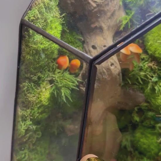 Molly the Reshi Picker Preserved Moss Terrarium captures the enchanting moment of this authentic POPMART figure gathering reshi mushrooms in a magical forest setting. Nestled within carefully preserved moss and surrounded by detailed magic mushroom decorations, this collectible centerpiece brings a touch of whimsy and nature-inspired charm to any space.